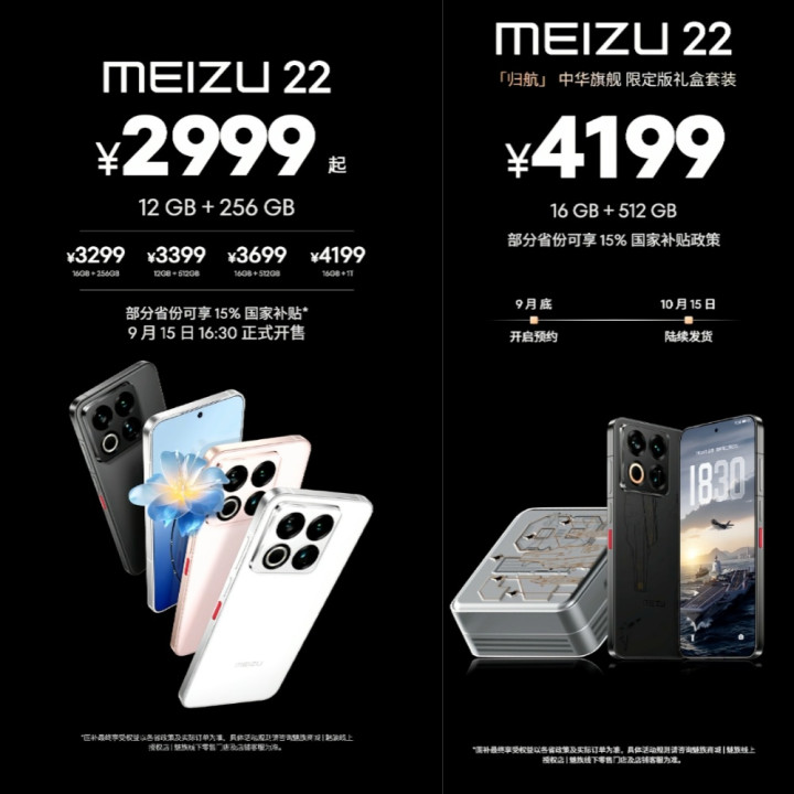 智东西9月15日报道,今天下午,魅族22旗舰智能手机正式发布。