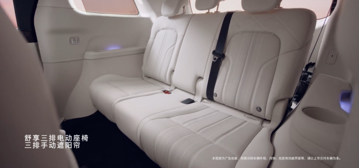 新车还拥有双隐藏式小桌板、26点全身座椅按摩,支持叩击按摩模式;配备22扬全景环绕音响、头枕音响、AI零重力按摩舱、二排电动隐私帘,支持一键零重力模式。